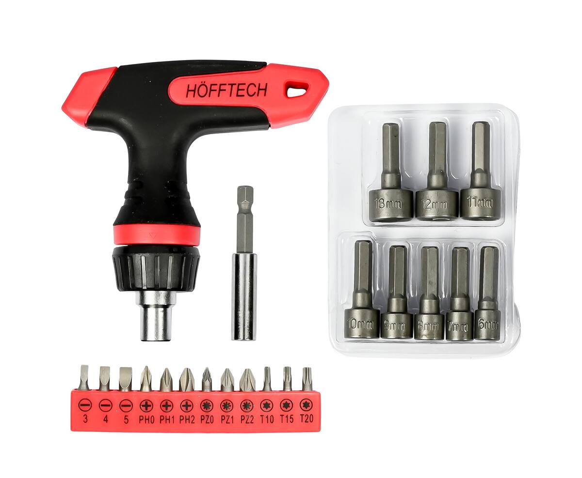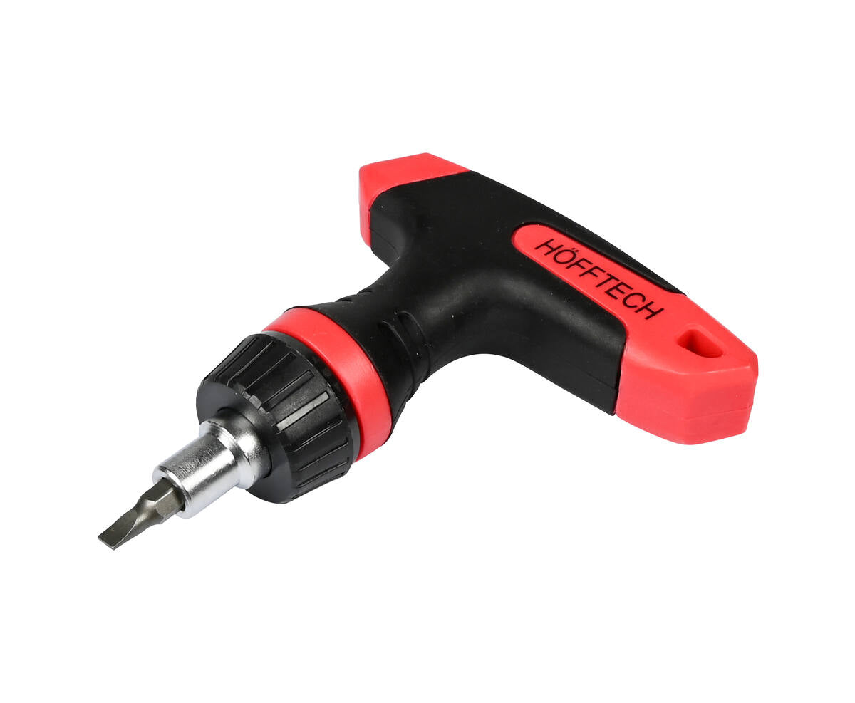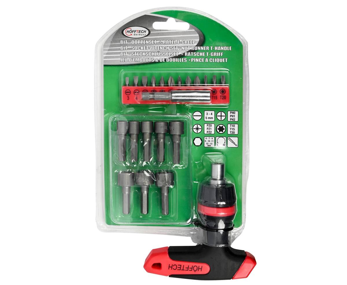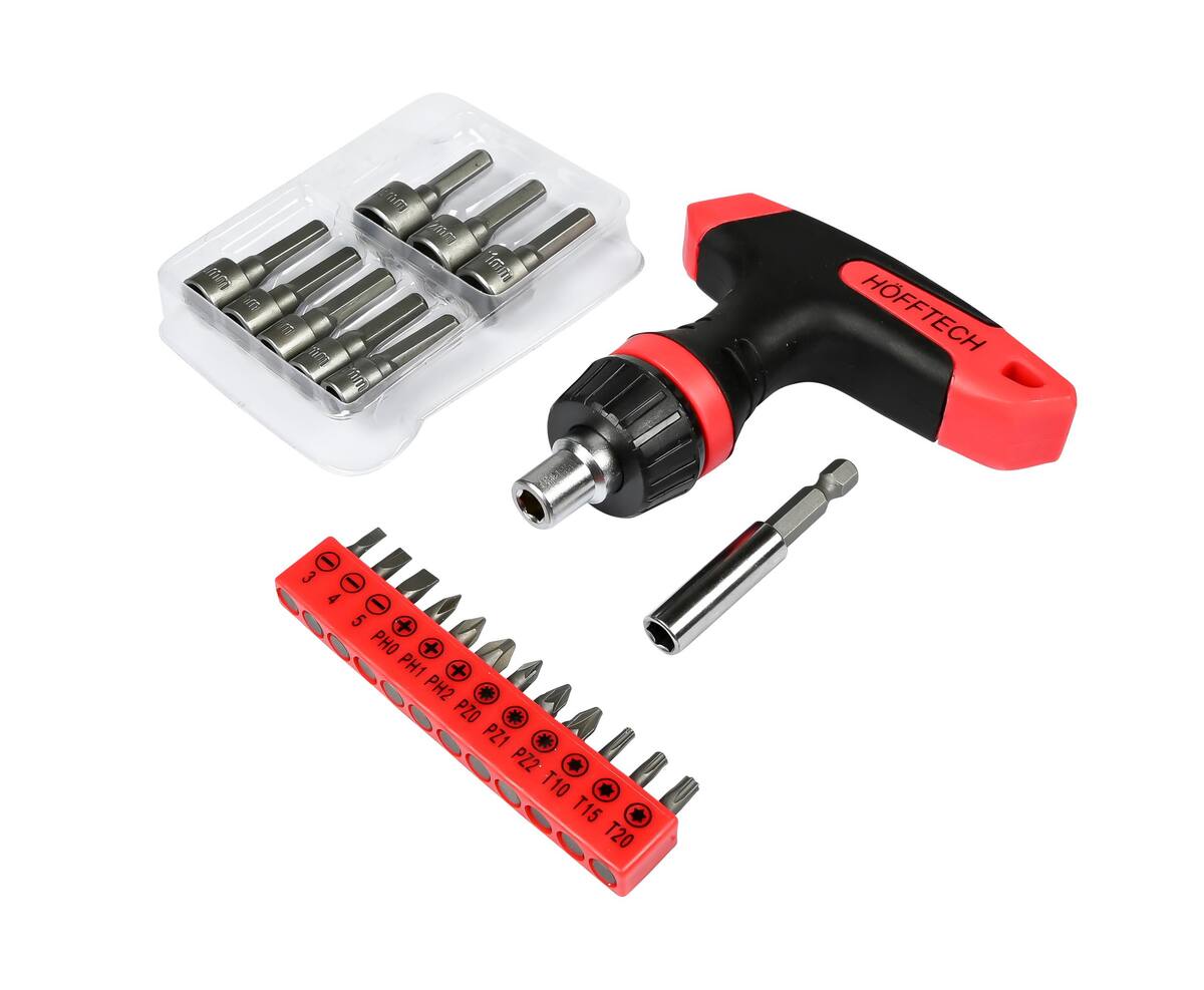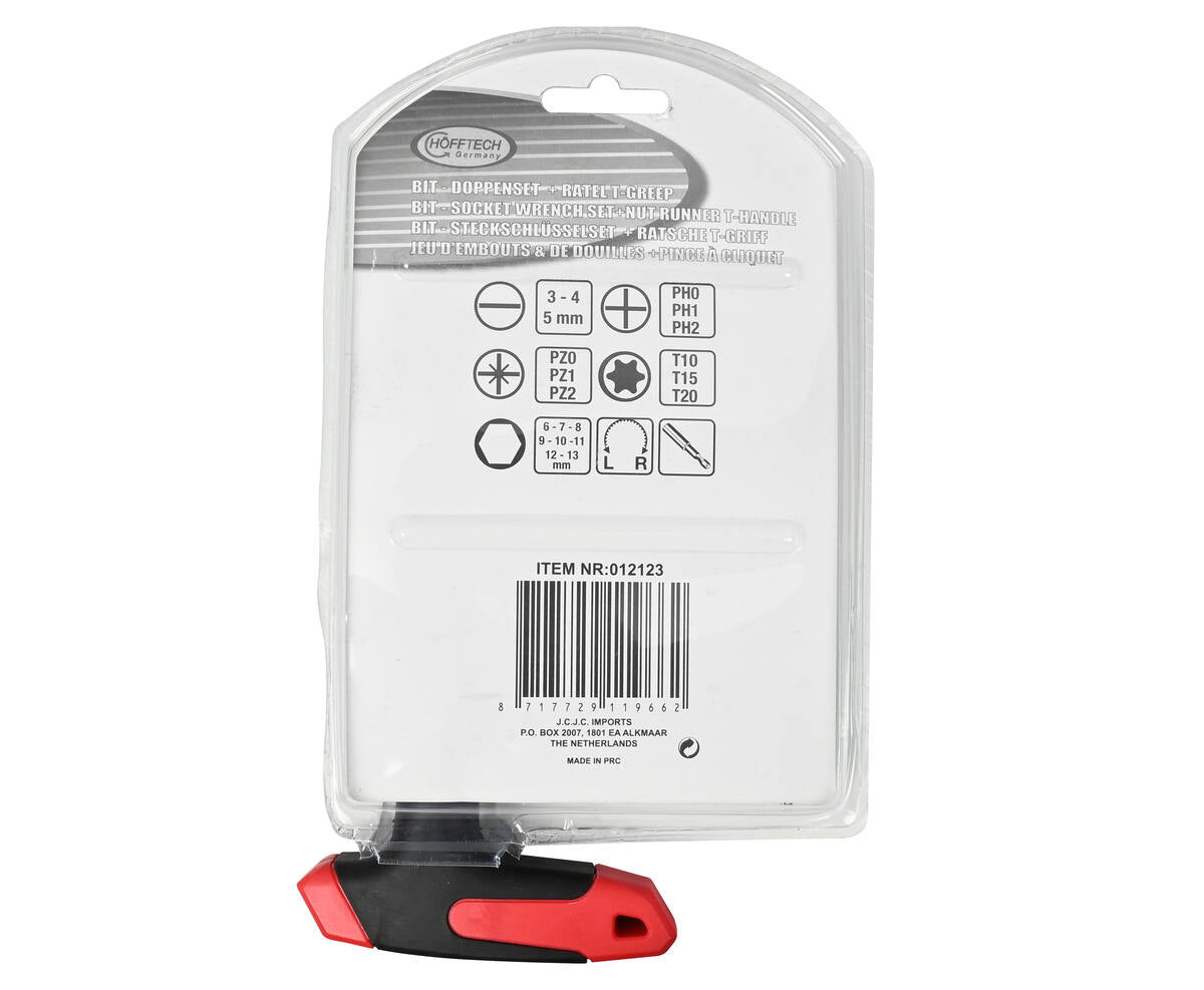 De set bevat een handige bithouder, waardoor je snel en eenvoudig tussen de verschillende bits kunt wisselen om de klus sneller te klaren. De inbegrepen ratel T-greep biedt niet alleen een comfortabele grip, maar ook de nodige hefboomwerking voor krachtig en efficiënt schroeven.