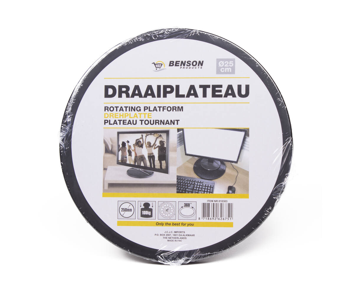 Met zijn strakke ontwerp en veelzijdige functionaliteit is het draaiplateau een onmisbaar accessoire voor elk modern huishouden of kantoor. Het maakt niet uit of je het gebruikt als een praktische oplossing voor je werkplek of als een stijlvolle toevoeging aan je interieur, dit draaiplateau past perfect in elke omgeving.