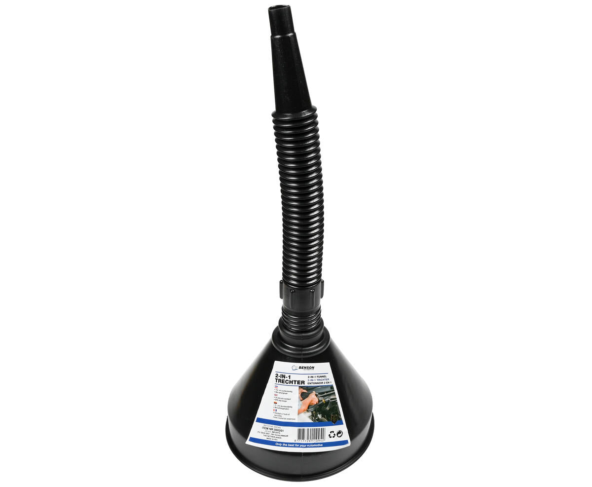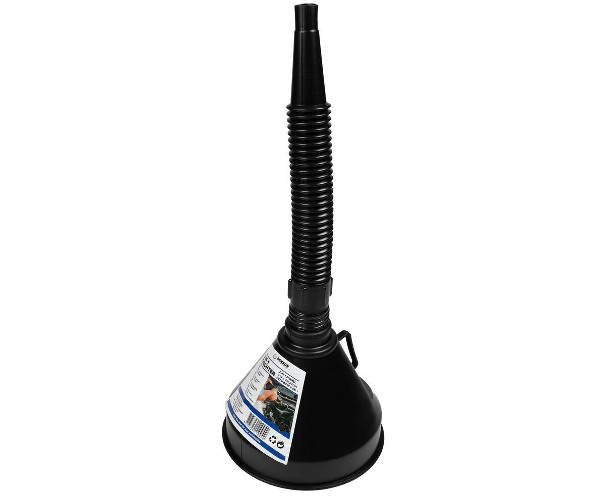 2-in-1 functie: De trechter heeft een ingebouwde filter welke vuil uit vloeistoffen filtert.