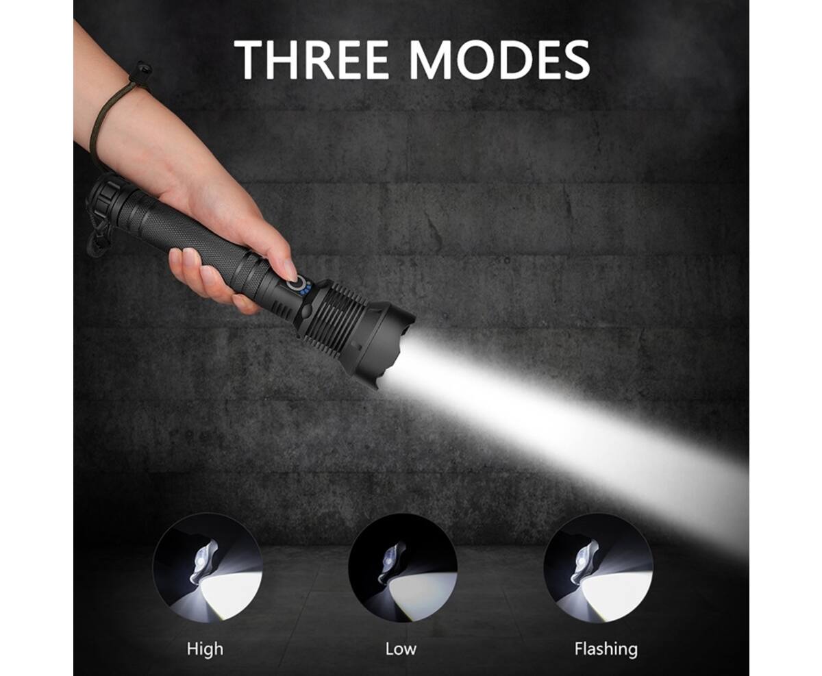 Uitgerust met de geavanceerde P50 lamp, levert deze zaklamp een indrukwekkende helderheid van 6000 Kelvin. Met drie handige lichtfuncties - hoog, laag en knipperend - kunt u moeiteloos schakelen tussen verschillende lichtinstellingen om aan uw specifieke behoeften te voldoen.